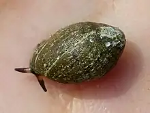 | A live Melampus sincaporensis on a human hand | |