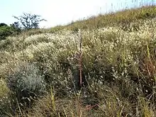 Melinis nerviglumis is a species of grass known by the common names mountain red top or bristle-leaved red top. The Latin name refers to the veined glume.[2] It is native from tropical to southern Africa, the western Indian Ocean islands, and Indochina.[2] It is cultivated as a garden ornamental due to its colourful purple flowers.[3] The flowers are produced in summer and fade to white as they mature. By this time the seeds can be harvested for new plantings.