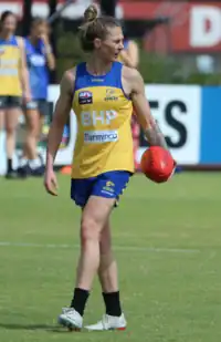 Melissa Caulfield (born 29 May 1988) is a retired Australian rules footballer who played for Fremantle and West Coast in the AFL Women's competition. Caulfield was drafted by Fremantle with their tenth selection and seventy-seventh overall in the 2016 AFL Women's draft.[1] She made her debut in the thirty-two point loss to the Western Bulldogs at VU Whitten Oval in the opening round of the 2017 season.[2] She played the first two matches of the year before missing the round three match against Greater Western Sydney. She returned for the round four match against Adelaide[3] and played every match for the remainder of the year apart from the last round of the season, and finished with five matches.[4] In March 2022, Caulfield retired to focus on work and travel.[5]