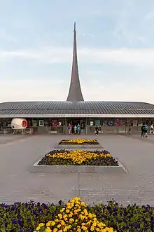 The Memorial Museum of Cosmonautics (Russian: Музей космонавтики), also known as the Memorial Museum of Astronautics or Memorial Museum of Space Exploration, is a museum in Moscow, Russia, dedicated to space exploration. It is located within the base of the Monument to the Conquerors of Space in the north-east of the city.[1] The museum contains a wide variety of Soviet and Russian space-related exhibits and models which explore the history of flight; astronomy; space exploration; space technology; and space in the arts. According to the Russian tourist board, the museum's collection holds approximately 85,000 different items and receives approximately 300,000 visitors yearly.[2]