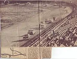 The NASCAR Grand National (now the NASCAR Cup) Series would visit this track numerous times during the 1955 and 1956 Grand National seasons.[2] Clint McHugh from Iowa (who tumbled over a guard rail and into a lake 50 feet below the embankment at the age of 28) [6] and Cotton Priddy from Louisville, Kentucky,[7] are the two race car drivers who died on this allegedly dangerous race track.[8] Since the 1960s, the track was never used for its intended purpose of stock car racing.[8] At a race held in November 1954, twelve thousand fans would attend a race spanning 250 miles (400 km) where Buck Baker would end up winning the 1954 running of the Mid-South 250.[9]