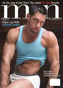 Men was an American gay pornographic magazine originally published as Advocate Men from 1984 until 1997, when it was retitled Men. It was published by Los Angeles-based Specialty Publications. The magazine contains explicit nude male photography, often featuring popular stars from the gay adult film industry, erotic fiction, erotic comics, video reviews and other features. Notable models have included Zeb Atlas and Mark Dalton. Notable artists include Gerard Donelan who contributed erotic comics to the magazine for eight years. In late 2009, it was announced that all of Specialty Publications' gay porn magazines would be merged into Unzipped.net.[1] The website in question is no longer available and no issues of any of the magazines have been released since.