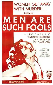Men Are Such Fools is a 1932 American pre-Code drama film directed by William Nigh and written by Viola Brothers Shore and Ethel Doherty. The film stars Leo Carrillo, Vivienne Osborne, Una Merkel, Joseph Cawthorn and Tom Moore. It film was released on November 11, 1932 by RKO Pictures.[1][2]