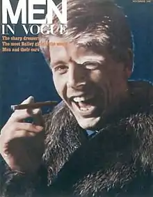 Men in Vogue was a British magazine of male fashion from the same publishers as Vogue. It was first published in 1965, and ceased publication in 1970.[1] The magazine was closely associated with the peacock revolution in English men's fashion in the 1960s for which Christopher Gibbs, an editor of the shopping guide in Men in Vogue, was a style leader with his "louche dandyism".[2] Other editors of the magazine were Robert Harling and Beatrix Miller.[3]
