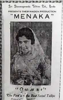 1. 1 2 "1935 - மேனகா - ஸ்ரீ சண்முகானந்தா டாக்கி கம்பெனி" [1935 - Menaka - Sri Shanmuganandha Talkie Company]. Lakshman Sruthi (in Tamil). Archived from the original on 28 September 2017. Retrieved 28 September 2017.