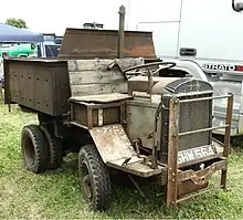 In 1941, their main product was the small 10F2 truck, a 10HP truck with a 2-ton payload. While intended for yards and factories, it could be used on the road (although the top speed was only 12mph) and was available with a cab. The standard wheelbase was only 5ft 2in, but there were options for longer wheelbases. Tyres were pneumatic with double wheels at the back. When loaded, it was also capable of towing 5-6 tons on a trailer.[5] At the 1947 Road and Transport Exhibition they showed a version of the 10F2 chassis with a steel tipping body 3ft 9in wide. Among its claimed uses were carrying materials for road repairs.[6]