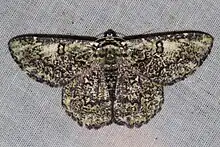 The anterior of the forewing has a pale greenish ground colour, while the rest of the wing is strongly irrorated (sprinkled) with black.