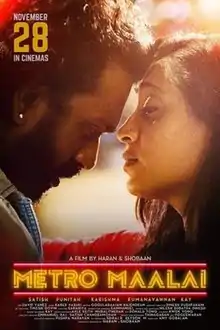 Metro Maalai (Tamil: மெட்ரோ மாலை) is a 2019 Malaysian Tamil-language indie romantic drama film. It tells the relationship of two souls, a rejected male guitarist and a neglected woman as they cross paths with each other in Kuala Lumpur.[1]