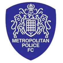 Metropolitan Police Football Club is a football club based in East Molesey, Surrey, England. Originally made up of players from the Metropolitan Police, the rule requiring players to be employees of the service was removed when the Commissioner refused to sanction time off for playing. However, the club is still part-funded by a police staff lottery.[2] They are currently members of the Isthmian League South Central Division and play at Imber Court, the base of the Met Police Sports and Social Club.
