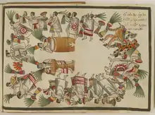 Mexico's modern folk dance tradition is a blending of elements from its Indigenous, African, and European heritage. Before the arrival of the Spanish, indigenous dance developed with strong ties to the religious practices.[4] For the Aztecs, there were two levels of dance, those for the elite, and those for the common people, such as Netotilitzli. After the Conquest, the Spanish initially worked to eradicate indigenous dances, considering them “too pagan” and succeeded with a number of forms, especially those associated with the priest and ruling classes.[4][5] However, they were unable to eradicate the more popular forms, especially in the rural and more inaccessible regions of New Spain. Instead, evangelizers worked to adapt dances to Christianity, giving them new meanings. For this reason, most of these dances have suffered at least some modification since the pre Hispanic era.[4][6]