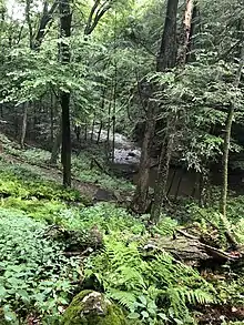 ![]() Low dam upriver on Mianus River in Mianus River Park near Old Mill Lane in Stamford, Connecticut. | |