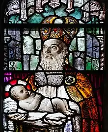 - The Nativity, Christ blessing a woman, and the Shepherds (1919). Church of England (St Patrick's), Wallsend-on-Tyne, Northumberland, England