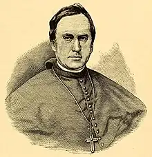 On his return to the United States, O'Connor passed through Ireland to recruit clergy for his new diocese, obtaining eight seminarians from Maynooth College and seven Sisters of Mercy from Dublin.[4] He arrived in Pittsburgh in December 1843, where he found a diocese comprising 33 churches, 14 priests, and about 25,000 Catholics.[4] To organize the new diocese, he held the first diocesan synod in 1844, and the same year he founded a girls' academy and orphan asylum, a chapel for African Americans, the Pittsburgh Catholic and St. Michael's Seminary.[3] To serve the German immigrants in his diocese, he welcomed the Benedictine monks who founded Saint Vincent Archabbey in Latrobe, Pennsylvania,[3] the first Benedictine monastery in the United States, and to further education he invited the Franciscan Brothers of Mountbellew in Ireland, who established the first community of religious brothers in the United States in Loretto.[7]