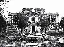 Many of Benoist's accomplishments were destroyed during the Second Opium war. Following the invasion of Beijing by British and French forces, Lord Elgin ordered the looting and destruction of Yuanming Yuan as retribution for the execution of European journalists and prisoners of wars by Qing forces.[16] The ruins were again destroyed during the Boxer Rebellion of 1900.[17]