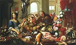 Michel Bouillon or Michel de Bouillon (fl 1638–1674) was a Flemish painter of flowers, hunting still lifes, fruit piece, market scenes, vanitas still lifes and garland paintings.[1] His signed works are rare and show the influence of both the French and Flemish schools and a somewhat archaic style.[2]
