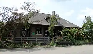 In 1902, Michigan Central constructed this railroad depot on the site of the previous freight depot. It served passengers until the 1930s, and by 1945 passenger service was also terminated. After passenger service was halted, the building remained vacant for 35 years. In 1979, it was remodeled into an ice cream parlor.[2] It was turned into a pizza restaurant, and in 1992 was turned into the Mason Depot Diner. The Diner was still operating in the building as of 2017.[4]