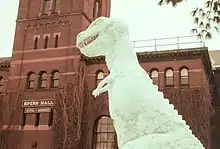 1956 Winter Carnival snow statue Tyrannosaurus Rex built by the student organization Rock Knockers Club