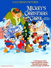 Mickey's Christmas Carol is a 1983 American animated Christmas fantasy featurette directed and produced by Burny Mattinson. The cartoon is an adaptation of Charles Dickens's 1843 novella A Christmas Carol, and stars Scrooge McDuck as Ebenezer Scrooge. Many other Disney characters, primarily from the Mickey Mouse universe, as well as Jiminy Cricket from Pinocchio (1940), and characters from The Adventures of Ichabod and Mr. Toad (1949) and Robin Hood (1973), were cast throughout the film. The featurette was produced by Walt Disney Productions and released by Buena Vista Distribution on December 16, 1983, with the re-issue of The Rescuers (1977). In the United States, it was first aired on television on NBC, on December 10, 1984.[1]