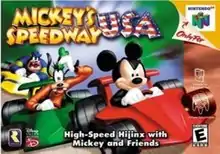 Mickey's Speedway USA is a Disney racing game for the Nintendo 64 and Game Boy Color, developed by Rareware and published by Nintendo under license from Disney Interactive. It is styled after other kart racers such as Mario Kart 64 and Diddy Kong Racing, and features characters from the Mickey Mouse universe racing across the United States. It is Rare and Nintendo's second Disney-themed racing game following Mickey's Racing Adventure (1999).