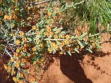 Micromyrtus flaviflora is widespread and common in desert, growing on red, sandy dunes and plains mainly in inland Western Australia, but also in adjacent areas of the Northern Territory and South Australia.[3][4][5]