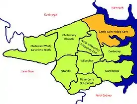Middle Cove is a suburb on the Lower North Shore of Sydney, in the state of New South Wales, Australia 9 kilometres north of the Sydney central business district, in the local government area of the City of Willoughby.