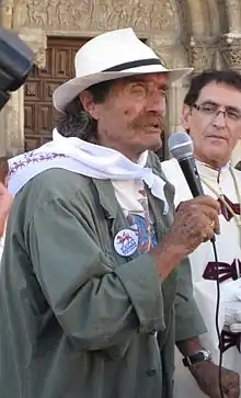 Later he became a reporter for TVE, where would cover wars such as the Congo (he was sentenced to death for filming the execution of 300 prisoners), Vietnam, Eritrea and Mozambique and events such as the death of Che Guevara (1967) or the Pinochet coup in Chile (1973). Salvador Allende, Pablo Neruda, Indira Gandhi, Haile Selassie, Norodom Sihanouk, Yassir Arafat and the 14th Dalai Lama are among the personalities interviewed by him in his time as a reporter.[4] He subsequently participated in programs such as Los reporteros ("The reporters") (with Félix Rodríguez de la Fuente, César Pérez de Tudela, Manu Leguineche and Jesús González Green) and Aventura 92 ("Adventure 92") (known in its current form as 'Ruta Quetzal'), consisting of the youth exchange students from Spain and Latin America to promote mutual understanding between the two sides of the Atlantic. Another program that he worked for was A la caza del tesoro ("Treasure Hunt"), presented by Isabel Tenaille: Miguel traveled by helicopter somewhere in the world following the instructions of a contestant who was in the studio in Madrid.[5]