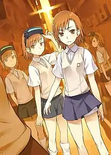 Mikoto Misaka (Japanese: 御坂 美琴, Hepburn: Misaka Mikoto) is a fictional character created by Kazuma Kamachi and first illustrated by Kiyotaka Haimura. She is a major character in the A Certain Magical Index light novel series and the main protagonist of its manga spin-off series A Certain Scientific Railgun.