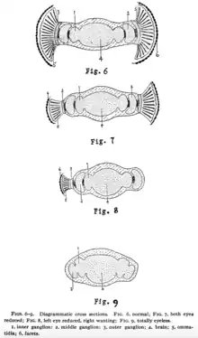 - ↑ Hoge Richards, Mildred; Furrow, Esther Y. (April 1925). "The Eye and Optic Tract in Normal and "Eyeless" Drosophila". Biological Bulletin. 48 (4): 243–258. doi:10.2307/1536570. JSTOR 1536570.