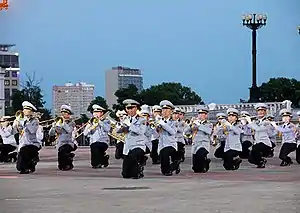The brass band participates in national and cultural musical events, such as the Mongolian State Flag Day Parade on Sükhbaatar Square, to which it plays an important role.[1][2] Graduates of the college take part in festivals of brass bands, which are commonly held in South Korea, Germany, Great Britain and Russia. The whole college acts as a military unit the size of a battalion and is included during joint performances with other Mongolian military bands.[3]