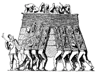 Little is known or reported about the siege techniques of the ancient Germanic peoples. Living in small villages that, according to today's archaeological findings, do not appear to have been equipped with high, thick walls (as were the oppida of the neighboring Gauls), they knew no specific siege techniques, perhaps only some defensive techniques. A brief mention is made of a failed attempt by them to besiege a Roman post during the years of the Marcomannic wars. This episode is depicted in Scene XI of Marcus Aurelius' column in Rome, according to which the barbarians prepared a large siege machine that was destroyed by lightning. The episode is said to have been witnessed by the Emperor himself, Marcus Aurelius.[50] Also attributed to this period is another failure by the Germanic coalition of Marcomanni, Quadi and Vandals to besiege Aquileia (in 170): although the barbarian horde was very numerous, once again it proved powerless before the walls of a large Roman city.[51]