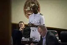 | Capitão de mar e guerra | Capitão de fragata | Capitão-tenente | Primeiro-tenente | Segundo-tenente | Guarda-marinha Subtenente |