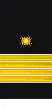 | Vicealmirante | Contralmirante | Capitán de navío | Capitán de fragata | Capitán de corbeta | Teniente de navío | Alférez de navío | Alférez de fragata | |||||||||||||||||||||||||||||