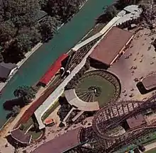 Milton S. Hershey, owner of what was then called Hershey Amusement Park,[1] made the decision build a new pool for the park in 1929.[2] The original pool, in the park since 1908,[3] was drained and filled in with dirt and gravel. The result left an open space in the park, and the first ride purchased to fill that void was the Mill Chute.[4][5][6][7][8]