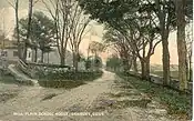 In 1865, resident Henry M. Senior opened a general store and post office. Five years later, Senior built a hat manufacturing shop in the area, which operated until 1892.[8] Mill Plain station, was built in 1881, and closed in 1928 after being acquired by the New York, New Haven and Hartford Railroad.[9] The post office was operated by the Senior family until the 1940s.[10]