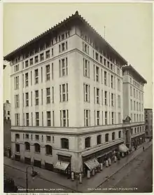 The building extends along Bleecker Street from Sullivan to Thompson streets, occupying four city lots.[4] It was constructed on the site of a row of formerly fashionable houses called Depauw Row, which had become tenements.[2] It cost $1.25 million to build and has eleven stories; two 100-foot (30 m) air shafts or light wells, 50 feet (15 m) square, capped by skylights, enabled each room to have a window[4] and correspond to the provisions of the 1879 Tenement House Law known as the "Old Law"; the architect, Ernest Flagg, was an advocate for housing reform who had urged these requirements. The layout of the building may have been inspired by the layout of The Dakota (1884), or by apartment buildings he had seen in Paris.