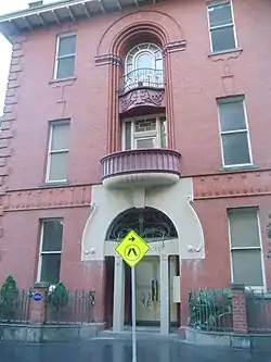 It was built in 1901 and designed in the Art Nouveau style by architects Sydney Smith & Ogg.[1][2][3] They also worked with architect Robert Joseph Haddon (1866–1929), who suggested the use of red bricks.[3]