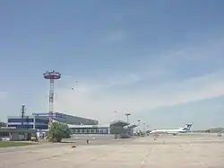 Mineralnye Vody Airport (Russian: Аэропорт Минеральные Воды) (IATA: MRV, ICAO: URMM) (also written as Mineralnyye Vody Airport, which "Mineralnye Vody" literally translates to Mineral Waters) is an airport in Stavropol Krai, Russia, located 4 kilometres (2.5 mi) west of Mineralnye Vody. It features a civilian terminal area on its west side with 41 parking spots. The airfield houses a Tupolev Tu-154 maintenance facility on the east side.