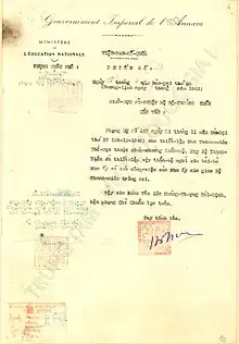 The Bảo Đại Emperor officially signed an imperial decree (dụ) on 2 May 1933 establishing the Ministry of National Education.[15]