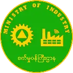 The Ministry of Industry (Burmese: စက်မှု ဝန်ကြီးဌာန) is a ministry in the Government of Myanmar that produces consumer products such as pharmaceuticals and foodstuffs, textiles, ceramics, paper and chemical products, home utilities and construction materials, assorted types of vehicles, earth-moving equipment, diesel engines, automotive parts, turbines and generators, CNC machines, transformers, agricultural machines, rubber and tires, etc.