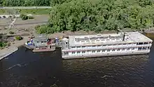 Minnesota Centennial Showboat was a traditional riverboat theatre docked at Harriet Island Regional Park on the banks of the Mississippi River in downtown Saint Paul, Minnesota, United States. The showboat contained an intimate jewelbox theatre that seated 225. The interior was decorated to keep in time with the Victorian Era style commonly associated with showboats. The Minnesota Centennial Showboat was run through a partnership with the University of Minnesota Theatre Department and the Padelford Boat Company. The showboat was a longtime tradition with the University beginning in 1958. The University Theatre utilized the showboat as a learning opportunity for its students to experience professional theatre. The showboat had its final performance in 2016.[1]