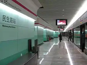 Minsheng Road (Chinese: 民生路; pinyin: Mínshēng Lù) is a station on Line 6 of the Shanghai Metro.[1] It began services on 29 December 2007. It later became an interchange station after the opening of Line 18 on 30 December 2021.[2]