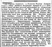News report from 1897 noting Ali's role in the arrest of the Chapekar brothers