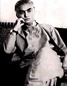 Mir Akbar Khyber[lower-alpha 1][lower-alpha 2] (January 11, 1925 – April 17, 1978) was an Afghan left-wing intellectual and a leader of the Parcham faction of People's Democratic Party of Afghanistan (PDPA). His assassination by an unidentified person or people led to the overthrow of Mohammed Daoud Khan's republic, and to the advent of a socialist regime in Afghanistan, the Democratic Republic of Afghanistan.