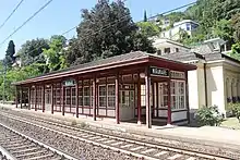 Miramare railway station (Italian: Stazione di Miramare) is a railway station in Miramare, a suburb of Trieste, in the autonomous region of Friuli Venezia Giulia, northeastern Italy.[1] The station was constructed in 1857 on a line which at the time connected Vienna with Trieste. The purpose of the new station was mainly to serve the Miramare Castle, newly constructed residence of the Archduke Maximilian.[2] The station building is intact but it is closed, and only local trains to Udine stop at the station.[2]