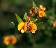 Mirbelia subcordata is a species of flowering plant in the family Fabaceae and is endemic to the south-west of Western Australia. It is an erect, spreading shrub with egg-shaped to lance-shaped leaves and yellow or orange and red flowers.