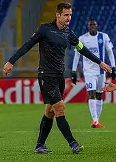 Klose captaining Lazio in a UEFA Europa League match against Dnipro in 2015.