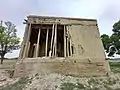 To the west of the hotel there is another ten-room building. Architecturally, it looks a bit plain. The foundation of the building was restored to 1 m of 25 rows of 28x28x4 bricks. The bricks of the 26th row were stacked upright, taking into account their earthquake resistance. Sinch and zavarav are placed in a polygonal shape, their edges are hidden from view. The interior of the building's rooms is decorated in oriental style. There was a 9-12-meter well on the edge of the platform on the surface of the yard, which was later buried.[7]