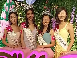 From Left: Miss Hong Kong 2018 2nd runner-up Sara Ting (丁子田), Champion Hera Chan (陳曉華), 1st runner-up Amber Tang (鄧卓殷), Miss Friendship Claudia Chan (陳靜堯)