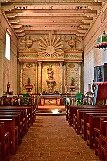 - The painted walls inside the church are the original artwork by artist Esteban Munras and other Salinan artists.[17]