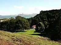 The program at the Marin Headlands for Mission blue butterfly habitat protection aims to deal with one of the main problems facing the Mission blue butterfly population. The Headlands area was once owned by the U.S. Army. From 1870 on, the Army used the area for forts such as Fort Cronkhite, coastal batteries such as those that protected the San Francisco Bay during WW II, and missile sites, such as the 280 that occupied the area during the Cold War.[2] While in the Marin Headlands, the Army planted a lot of trees, so many that today the non-native, invasive species that occupy the Headlands threaten the habitat of the Mission blue butterfly. The habitat protection program seeks to root out these species from selected areas of the Marin Headlands. Some of the species that have now become native to the area and threaten the habitat of the endangered Mission blue butterfly include blue gum eucalyptus, Monterey cypress, Monterey pine and blackwood acacia. The Mission Blue Butterfly UserFee Project in the headlands will try to remove these species and revegetate the area with native coastal prairie plants.[3]
